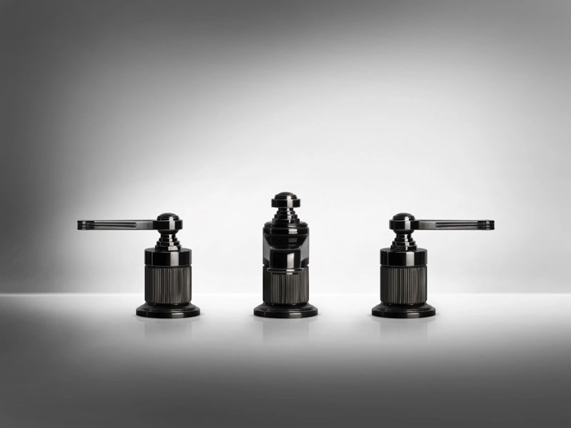 Đối với bộ vòi ba lỗ màu Black Metal, những khối đa giác xếp chồng trên tay nắm là một sự gợi nhớ tinh tế đến sự bùng nổ toàn diện của thời kỳ 1920 rực rỡ.