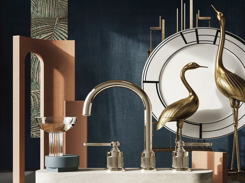 Những chi tiết đầy thời thượng mang đậm tinh thần nghệ thuật Art Deco của những năm 1920 được chắt lọc và điêu khắc tỉ mỉ trên từng thiết kế, mà tiêu biểu là những đường sổ dọc tinh xảo trên thân vòi màu Nickel.