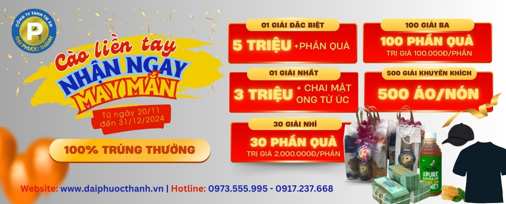 Tiếp nối thành công của chương trình khuyến mãi Tết 2024, nhằm tiếp tục tri ân khách hàng đã tin tưởng và sử dụng các các phẩm của Công ty trong thời gian qua, Công ty TNHH TM-XD Đại Phước Thành phát động chương trình khuyến mãi như sau: