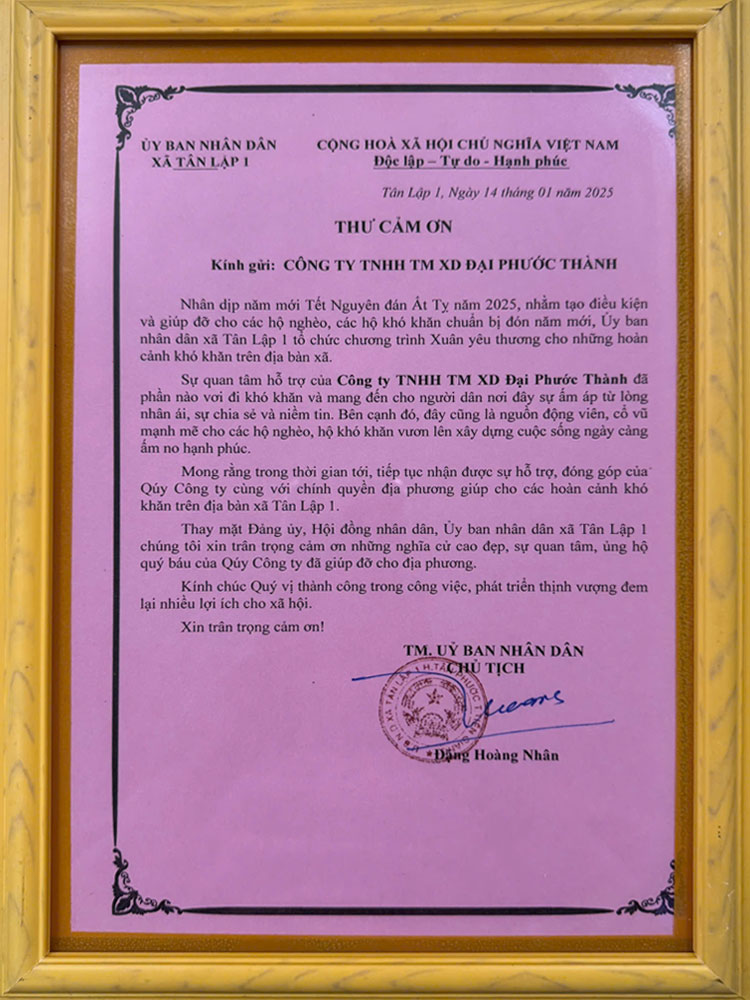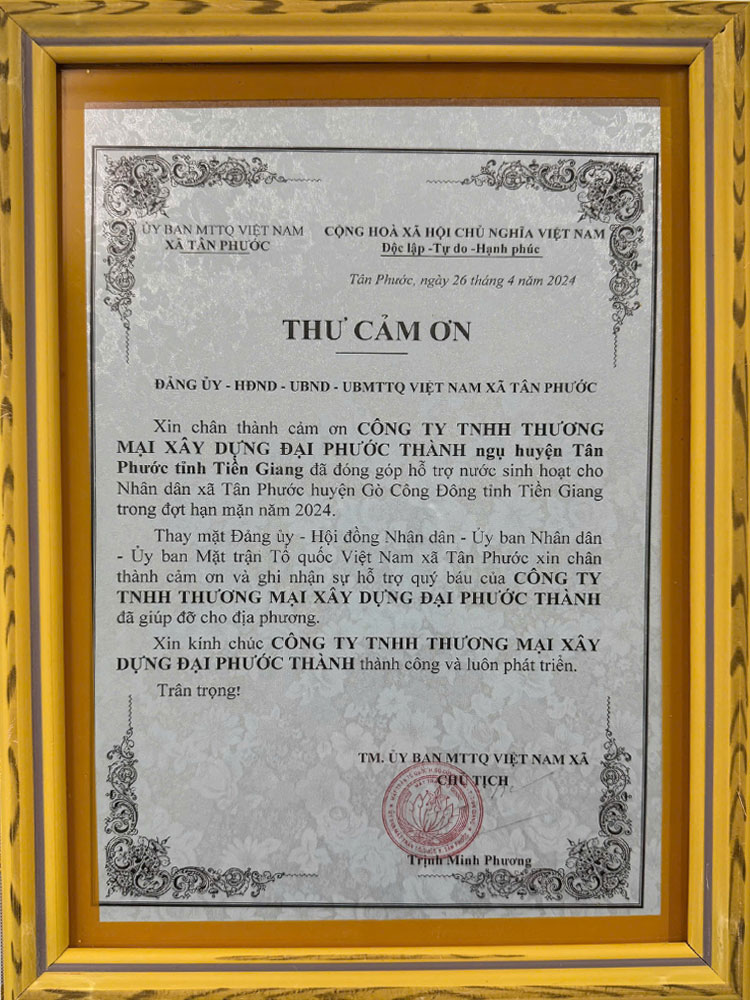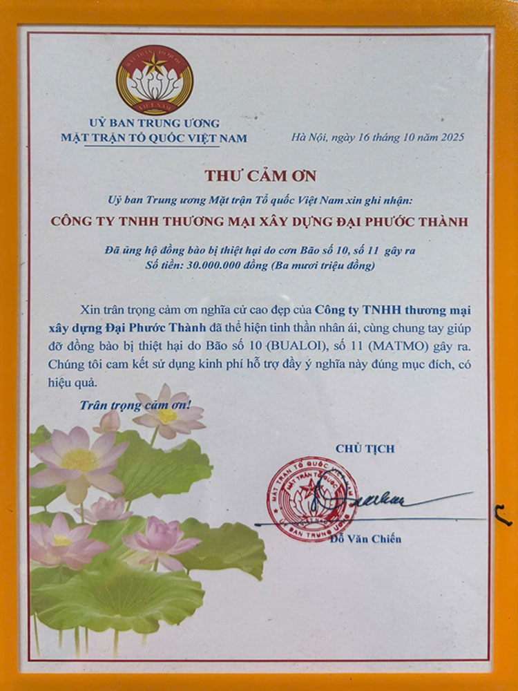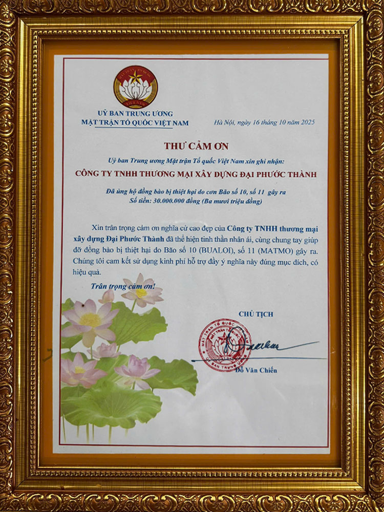 Với phương châm: “Uy tín – Chất lượng – Hài lòng khách hàng”, ĐẠI PHƯỚC THÀNH không ngừng đổi mới, mở rộng quy mô và nâng cao dịch vụ.